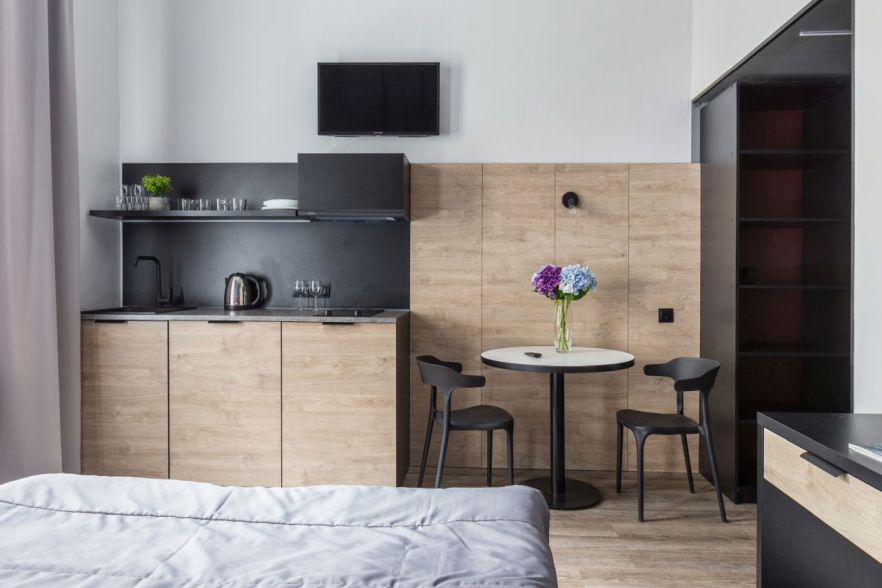 Мини-кухня с кухонными принадлежностями